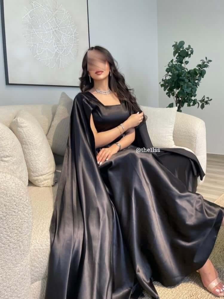 - القصة المربعة عند العنق في فستان اسود اكمام طويله تضيف توازناً للتصميم وتبرز جمال الرقبة.