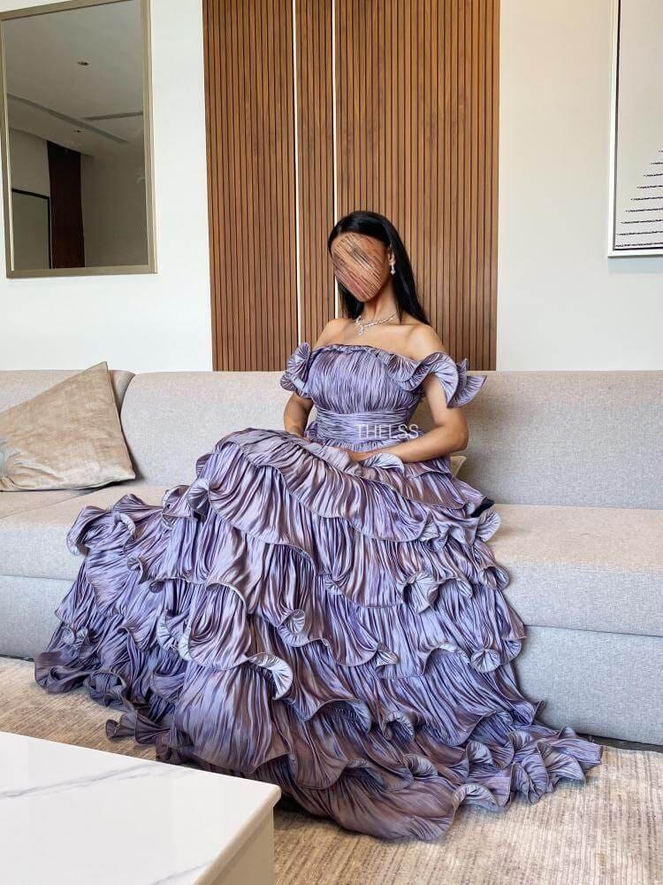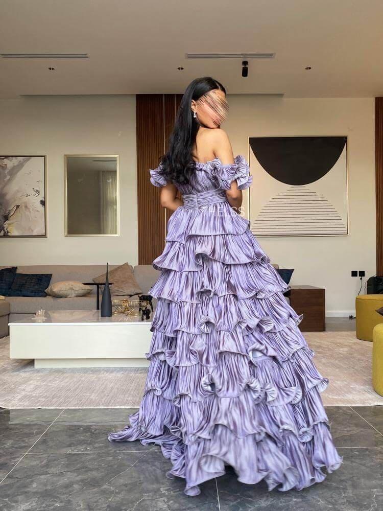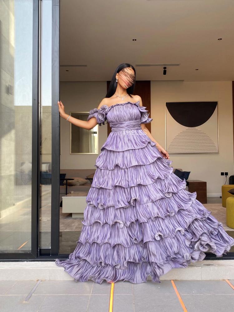 فستان طبقات منفوش, بلون موف اكتشفي الأناقة والرقي. من THELSS صُمم هذا الفستان الفريد ليلبي تطلعات المرأة العصرية التي تبحث عن التميز والجاذبية في كل مناسبة. يجمع بين التصميم الأنيق والتفاصيل الفريدة ليمنحكِ إطلالة ساحرة تأسر الأنظار.