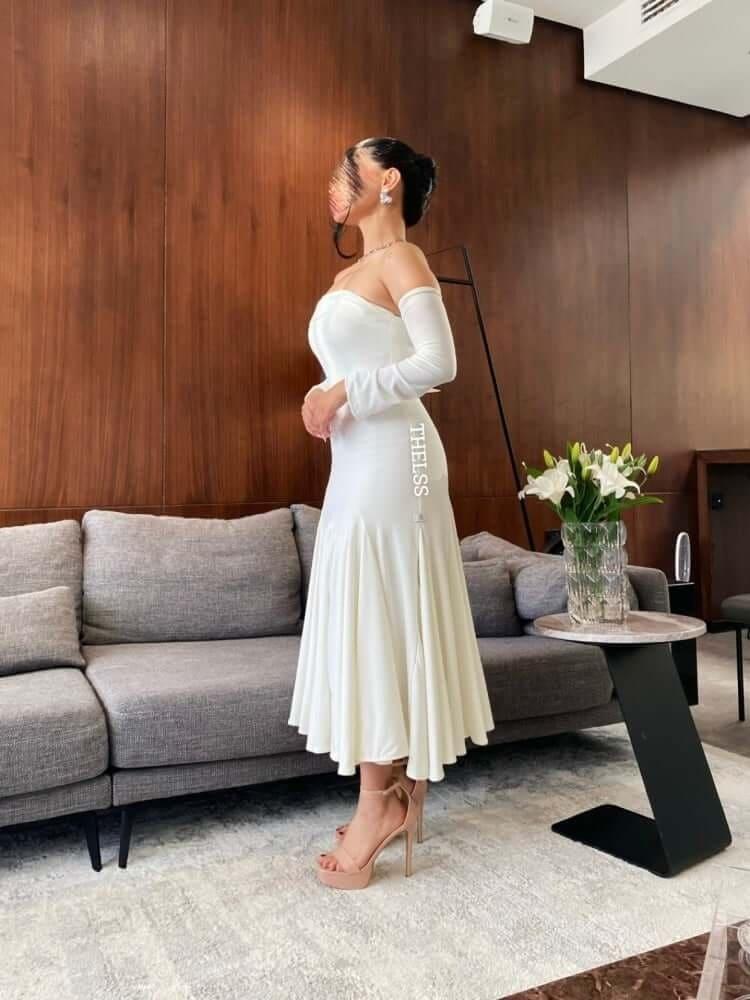 فستان كريب سكوبا, مصنوع من قماش السكوبا يجسد الأناقة العصرية والتفرد بلمسة من الفخامة. قماش السكوبا المعروف بملمسه الناعم وثباته على الجسم، يجعله الخيار المثالي للمرأة التي تبحث عن إطلالة جذابة ومتميزة. تصميم الفستان الراسخ جدًا على الجسم مع الأكمام المنفصلة يضفي لمسة من الجرأة والأناقة، مما يجعله مثاليًا للمناسبات الخاصة.