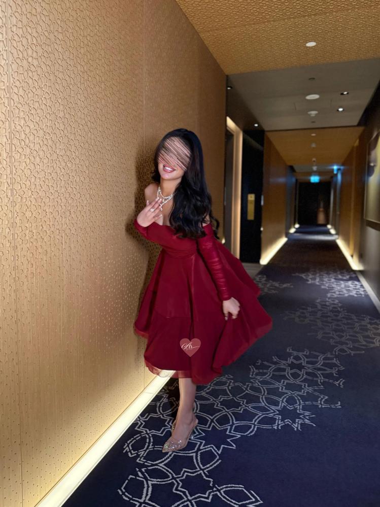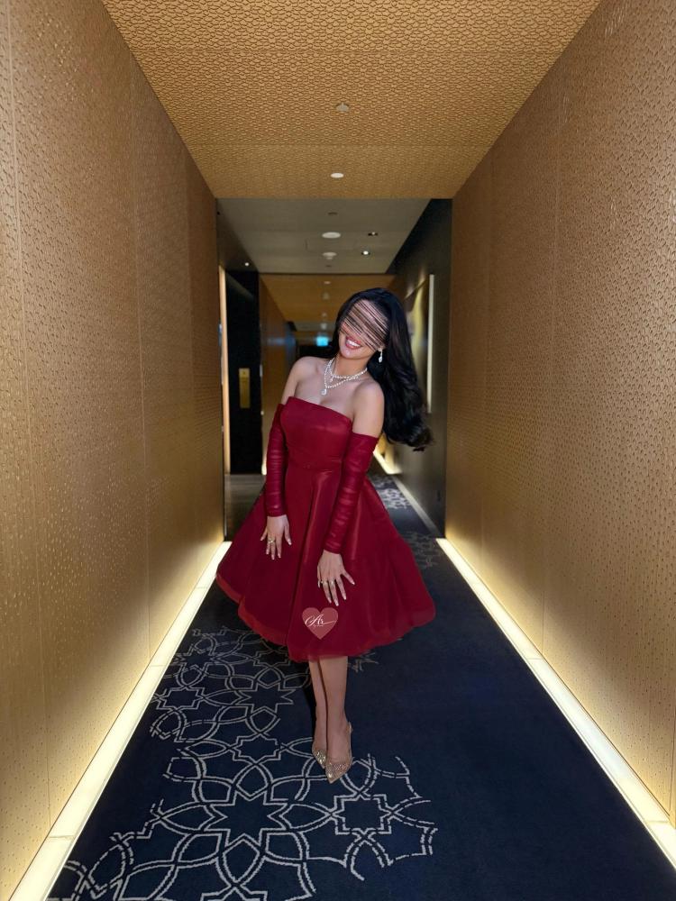فستان أنيق بتصميم فخم وجذاب، مصنوع من قماش الشيفون المبطن لمظهر راقٍ وانسيابي. يتميز بقصته المنفوشة التي تضيف لمسة من الفخامة، مع أكمام من التول الشفاف تمنحكِ إطلالة أنثوية ساحرة. خيار مثالي للمناسبات والسهرات.