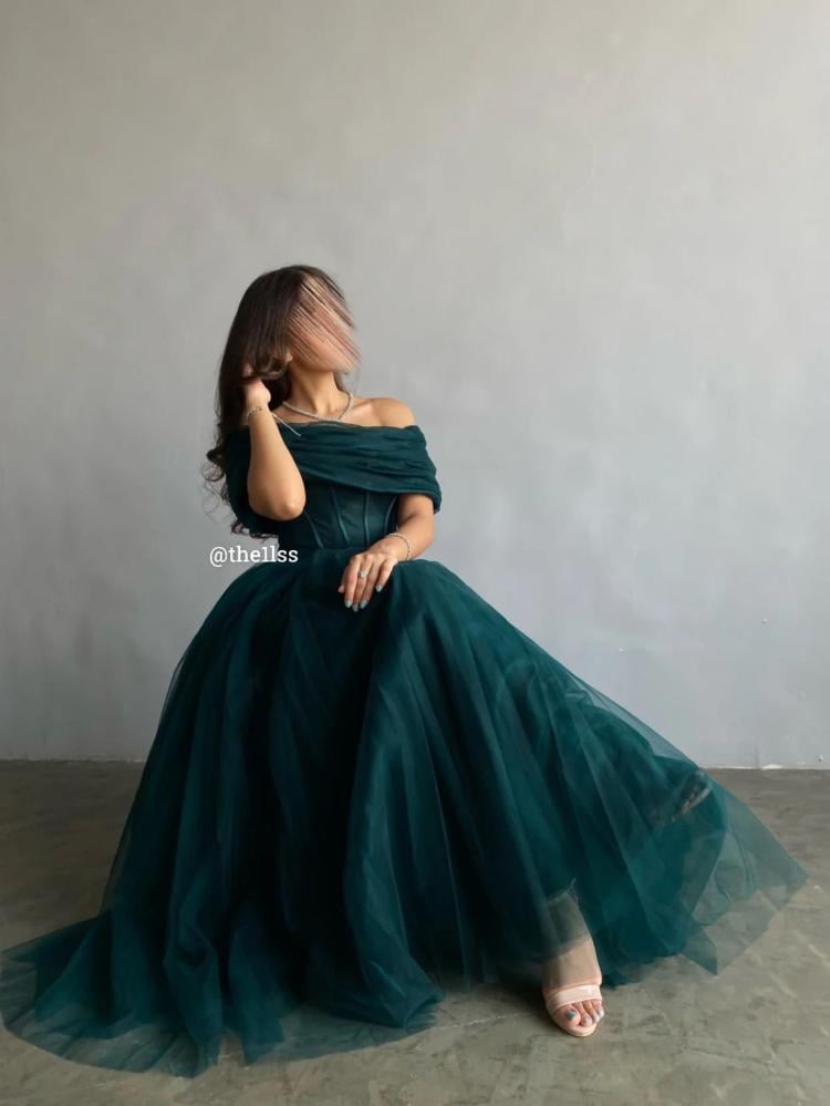 - فستان اوف شولدر طويل أخضر هو خيار مثالي للسهرات والمناسبات الخاصة، حيث يمنحك إطلالة ساحرة تجمع بين الجمال والأناقة، فهو يبرز جمالك بطريقة مميزة تلفت الأنظار إليك.